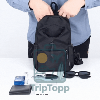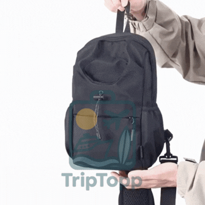✅ Step 1 – Pack Your Essentials: Open the main compartment and organise your belongings — wallet, phone, keys, power bank, and water bottle — into the dedicated pockets. The multi-compartment design ensures everything stays in place and easy to find.