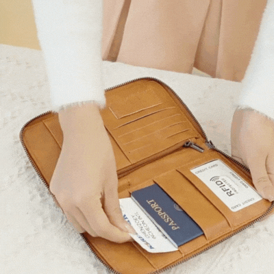 🪪 Storage: Passport holder, 4 card slots, bill slots, SIM card pockets, photo pocket